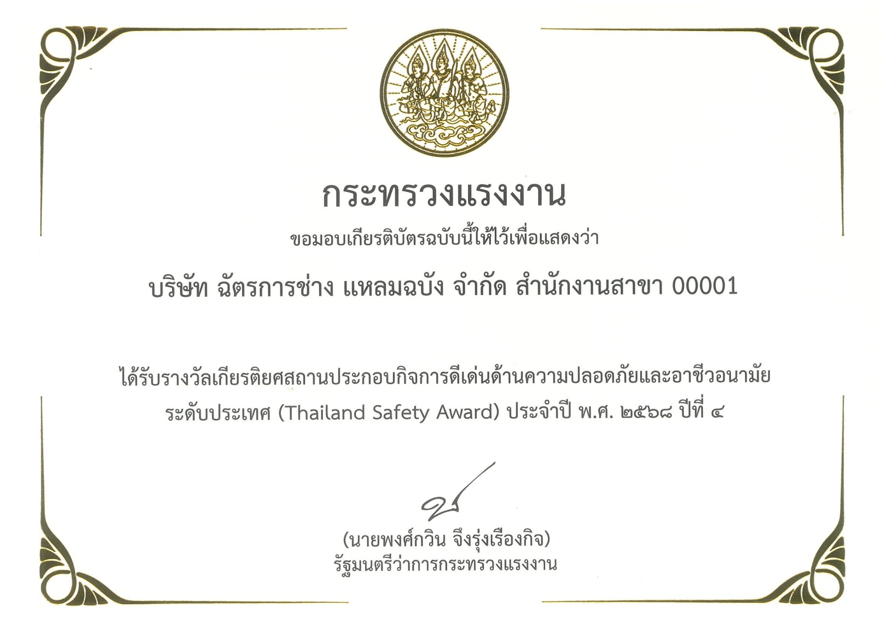 ให้ความสำคัญและตระหนักถึงการจัดการด้านความปลอดภัย อาชีวอนามัย