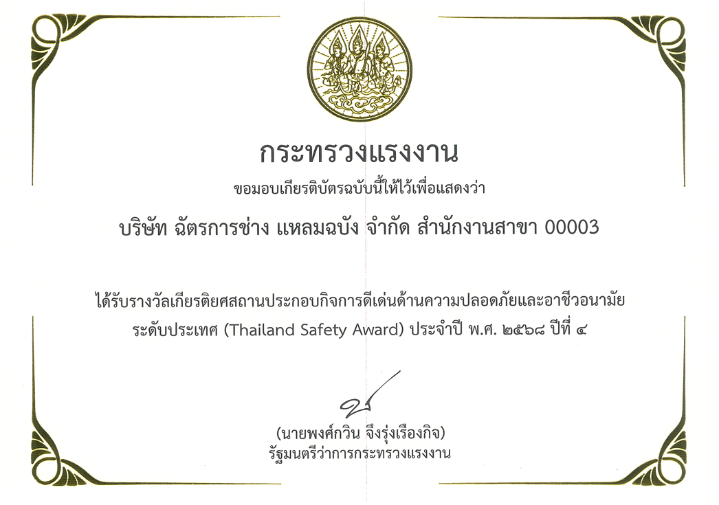 และสภาพแวดล้อมในการทำงานควบคู่ไปกับการดำเนินธุรกิจเพื่อควบคุมและป้องกันผลกระทบต่อความปลอดภัย